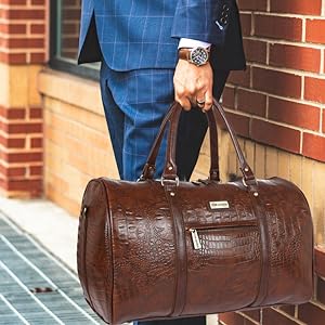 Fur Jaden Brown Textured Leatherette Stylish & Spacious Weekender Duffle Bag for Travel